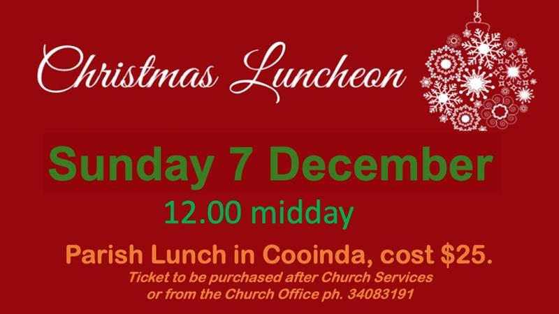Please keep in mind : Sunday the 7th of December we have the annual Christmas Luncheon, One Service