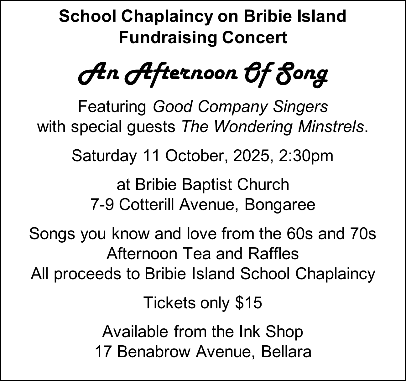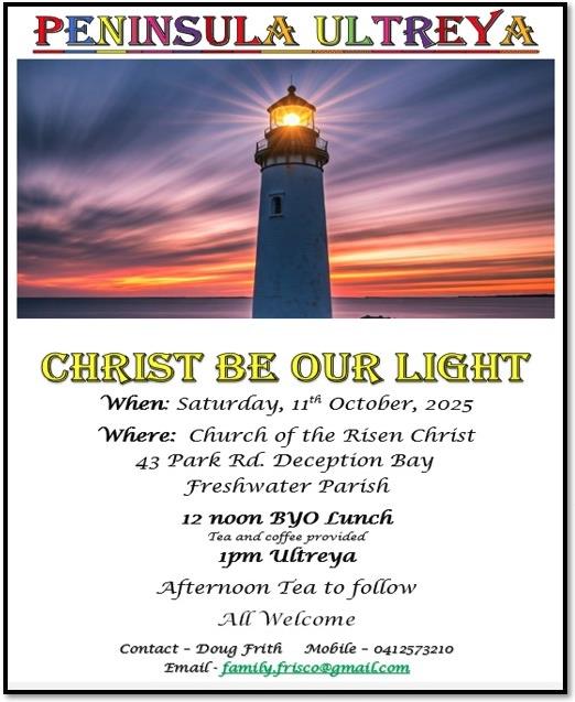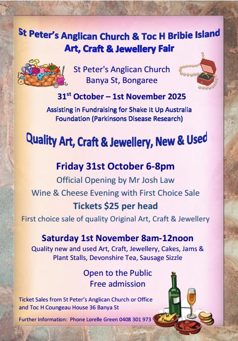 Attention Craft Makers!!: If you are interested in providing any ideas for saleable craft to be included in future Church stalls, please bring a sample of your “craft/idea” to our next meeting. We will tentatively book our “Show and Tell” meeting, to be held on the first Monday of each month at 10am at a “to be advised coffee shop” Our aim is to have an “always ready” stockpile of craft for our next Church Stall or Jumble Sale. Most importantly, enjoying fellowship together. Please contact Sue on 0416 339 972 if you have any queries or would like to attend”